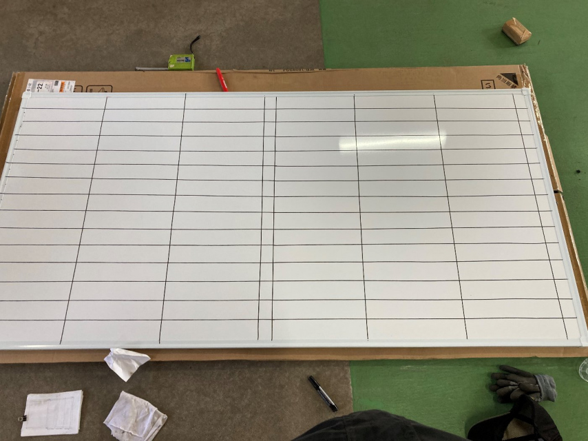 最初は真っ白なホワイトボードだったのですが田村さんと小倉さんが線引きをしてくれました!