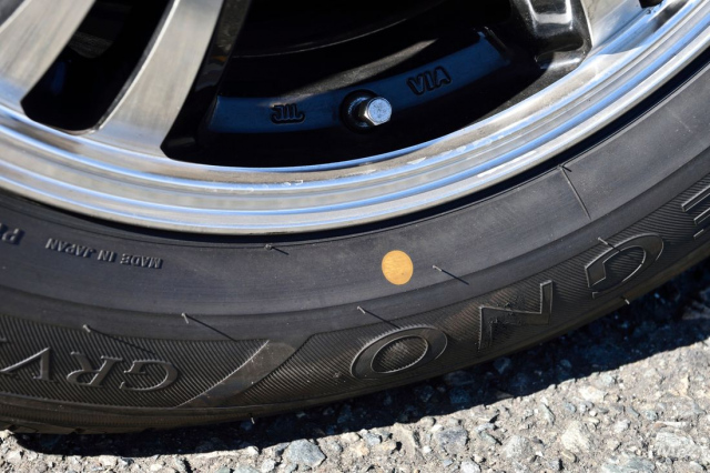 今回は新品タイヤに付いているこちらの黄色のマークについて