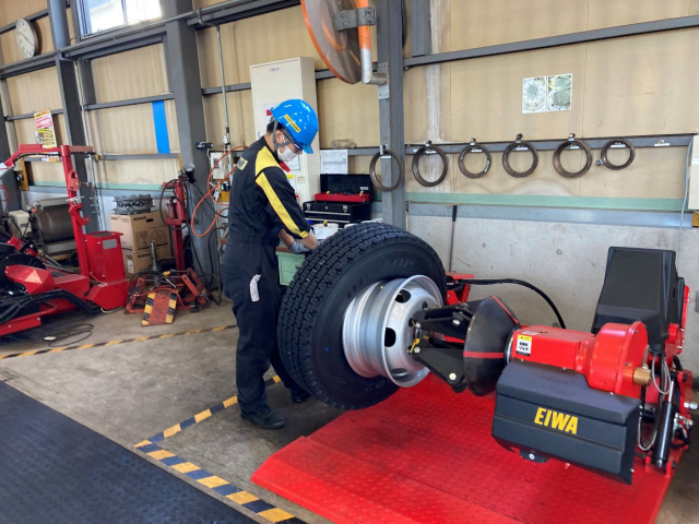 この画像は戻ってきて早速トラックのタイヤ作業をしている様子です!!