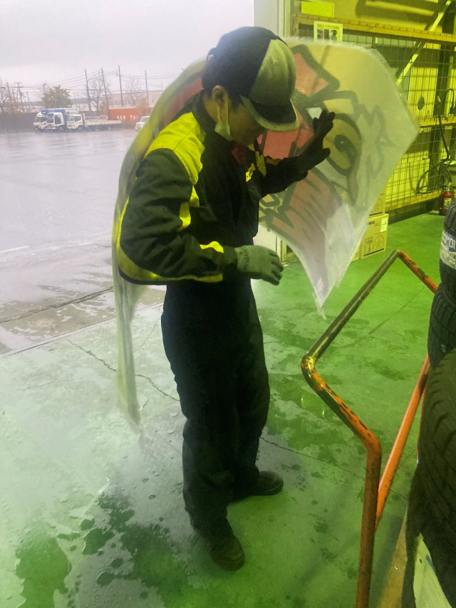 結局二人ともずぶぬれで倉庫からタイヤを運んでいきました…