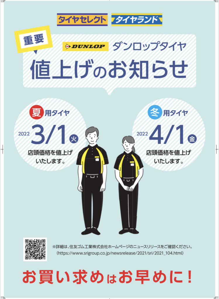 4月からは冬用タイヤが値上げになります。もうすぐですね。。。