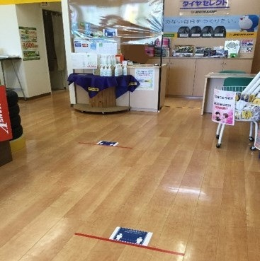レジに並ぶ際のお客様に一定の間隔をとっていただくように、