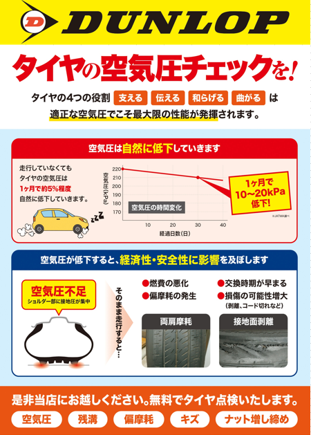 タイヤの摩耗や、燃費、乗り心地の悪化につながります!
