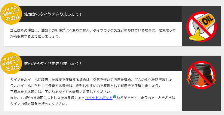 油類などからタイヤを守って保管すれば、