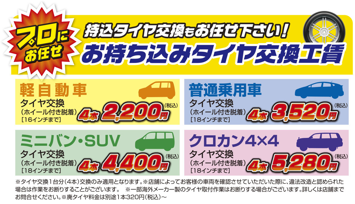タイヤ交換の予約を事前にすると、スムーズにはいれますよ♪