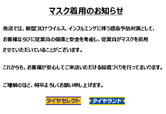 タイヤ交換につきましては、お客様とスタッフの安全を考慮し
