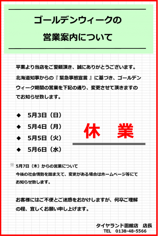 5月GWのタイヤランド函館の