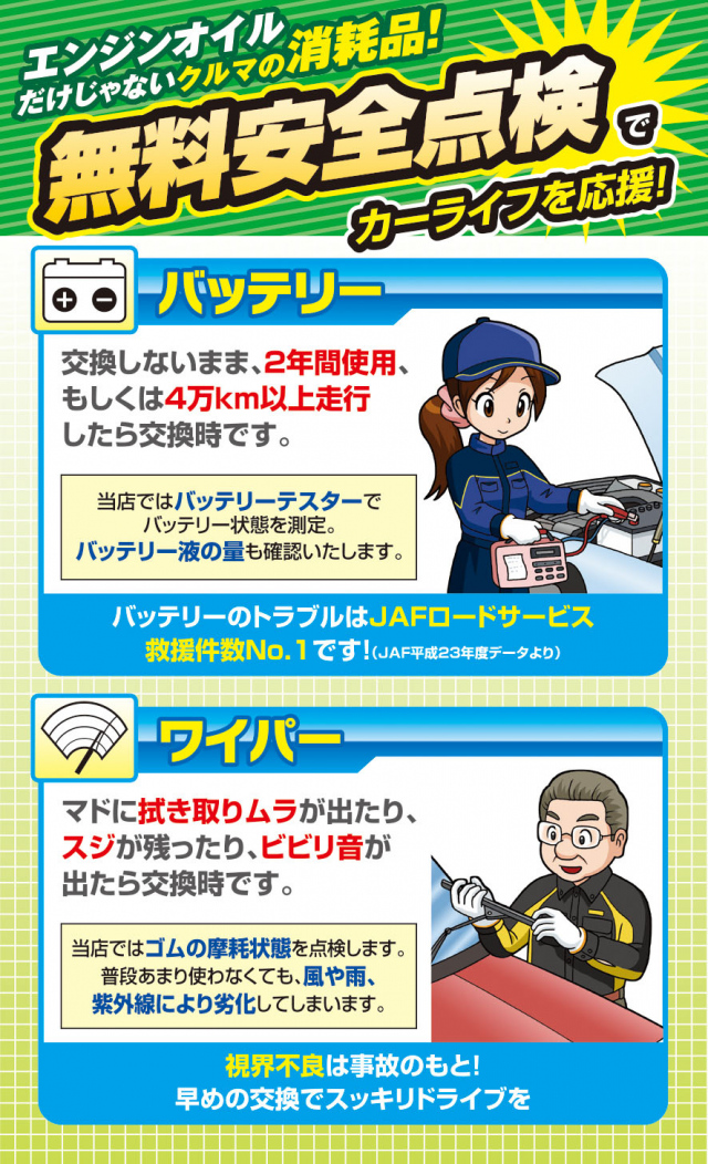バッテリーや、ワイパーなども、どんどん消耗していきます・・・!