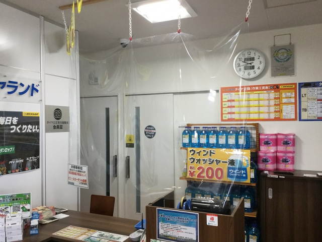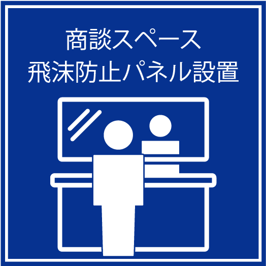 レジ、商談スペースに飛沫防止パネルを設置しております。