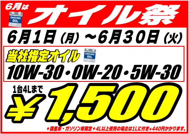 タイヤランドでは現在、オイル祭開催中です!