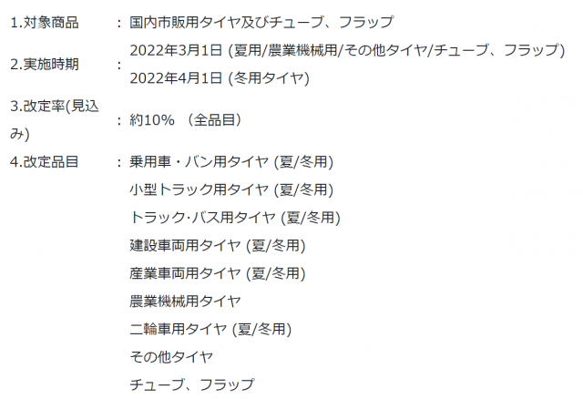 住友ゴム工業(株)は、国内市販用タイヤおよび関連商品の