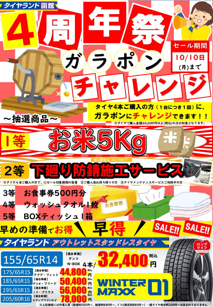 お得なこの機会にぜひ、タイヤランド函館へGOGO!!