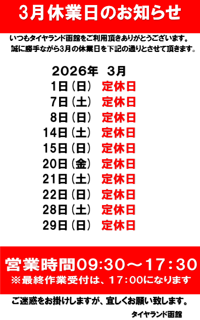 というわけで、3月の定休日のご案内です!
