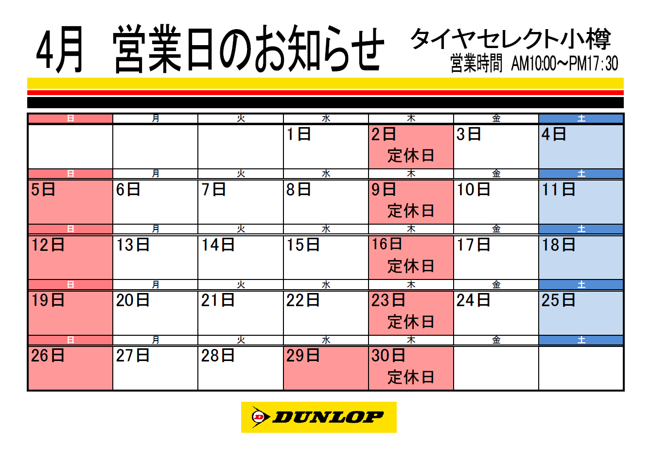 4月の定休日のご案内です。