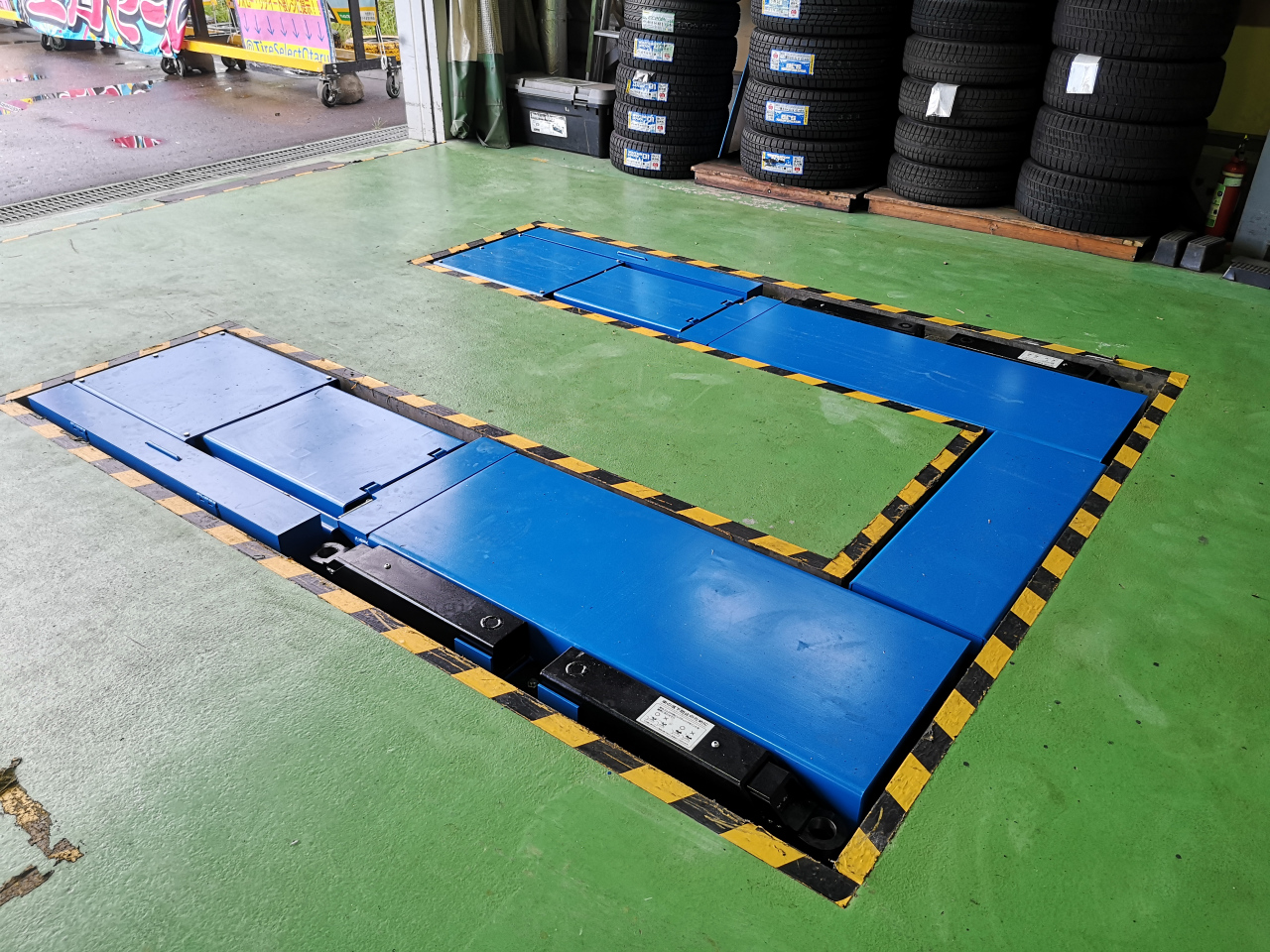 ピッカピカです!以前のリフトでは、こちらのレーンでは車重のあるハイエースのような車や大きめのセダンの作業は行えませんでしたが、今回のピットではどちらでもほぼすべての車の作業が行えるようになりましたよ!!