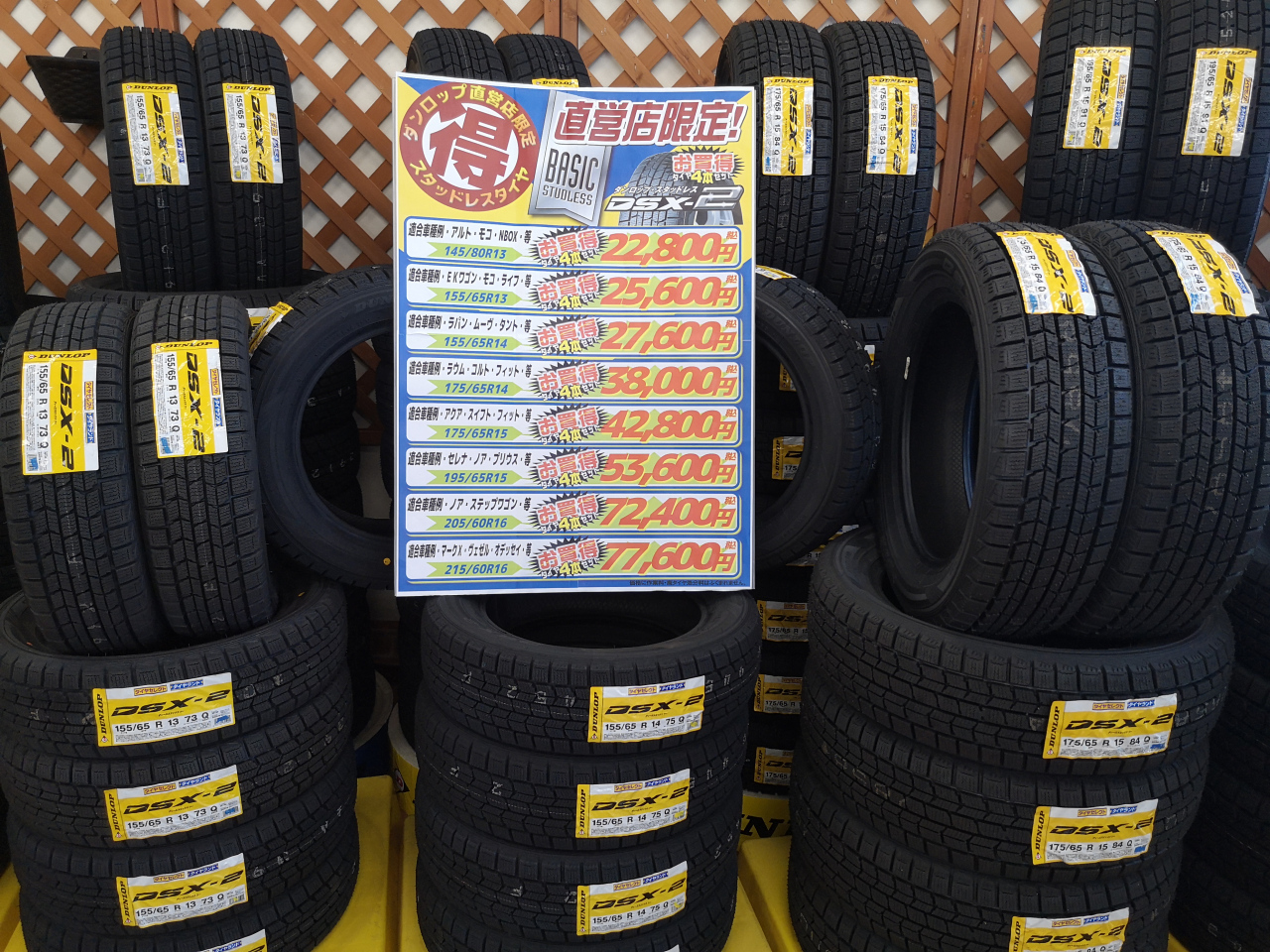 当店はダンロップ直営店ですので、通常のダンロップ製品はもちろん!直営店限定のお得なタイヤもご用意しております!