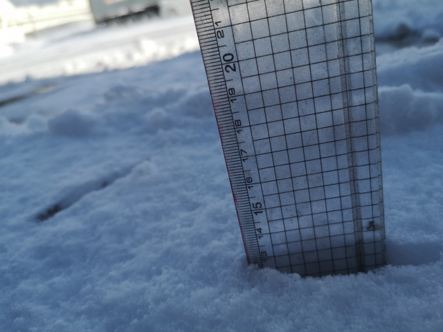 駐車場のショベルの行き届かないところでどれくらいか計ってみましたよ!