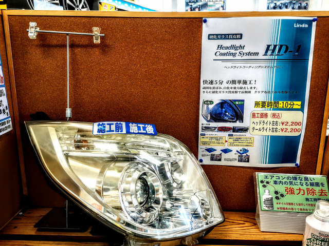 そこで、当店では黄ばんだヘッドライトを本来の透明感に戻す、ヘッドライトコーティングを施工することができます!