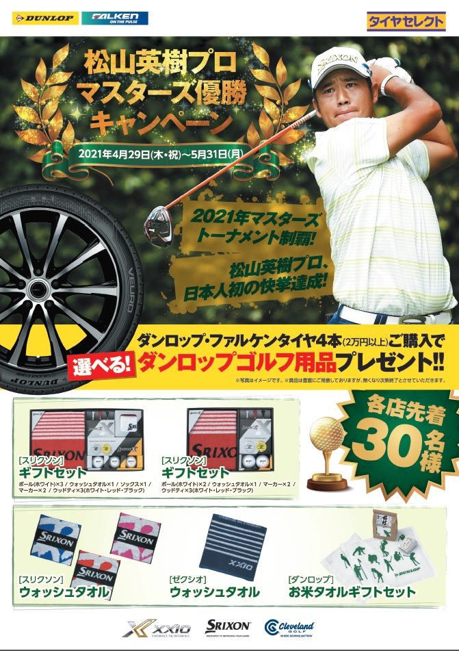 松山英樹選手はダンロップスポーツと契約しており、マスターズ優勝をお祝いしてキャンペーンを実施することになりました!