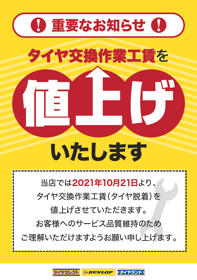 実は春に店頭では告知しておりましたが、春のタイヤ交換時期と被り、混乱を招かぬよう