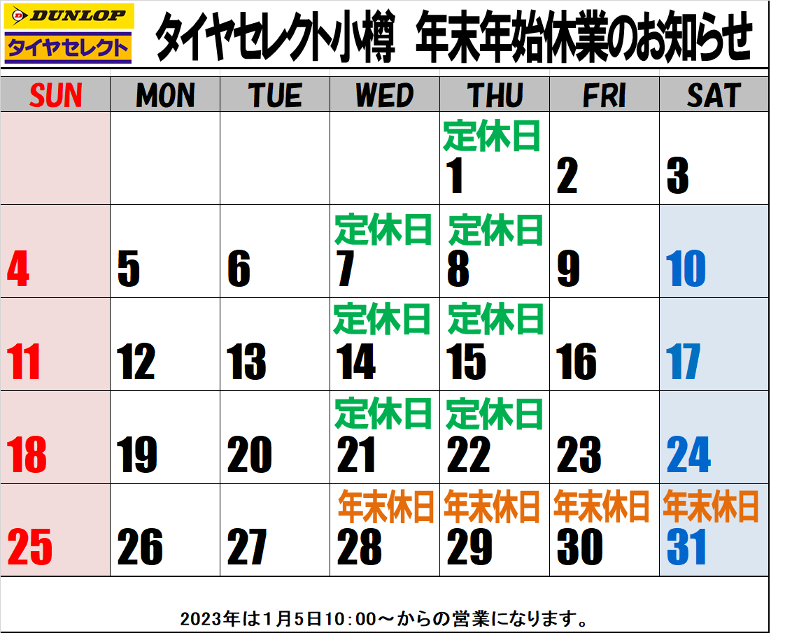 12月の定休日についてと年末年始の休業日についてもお知らせいたします。