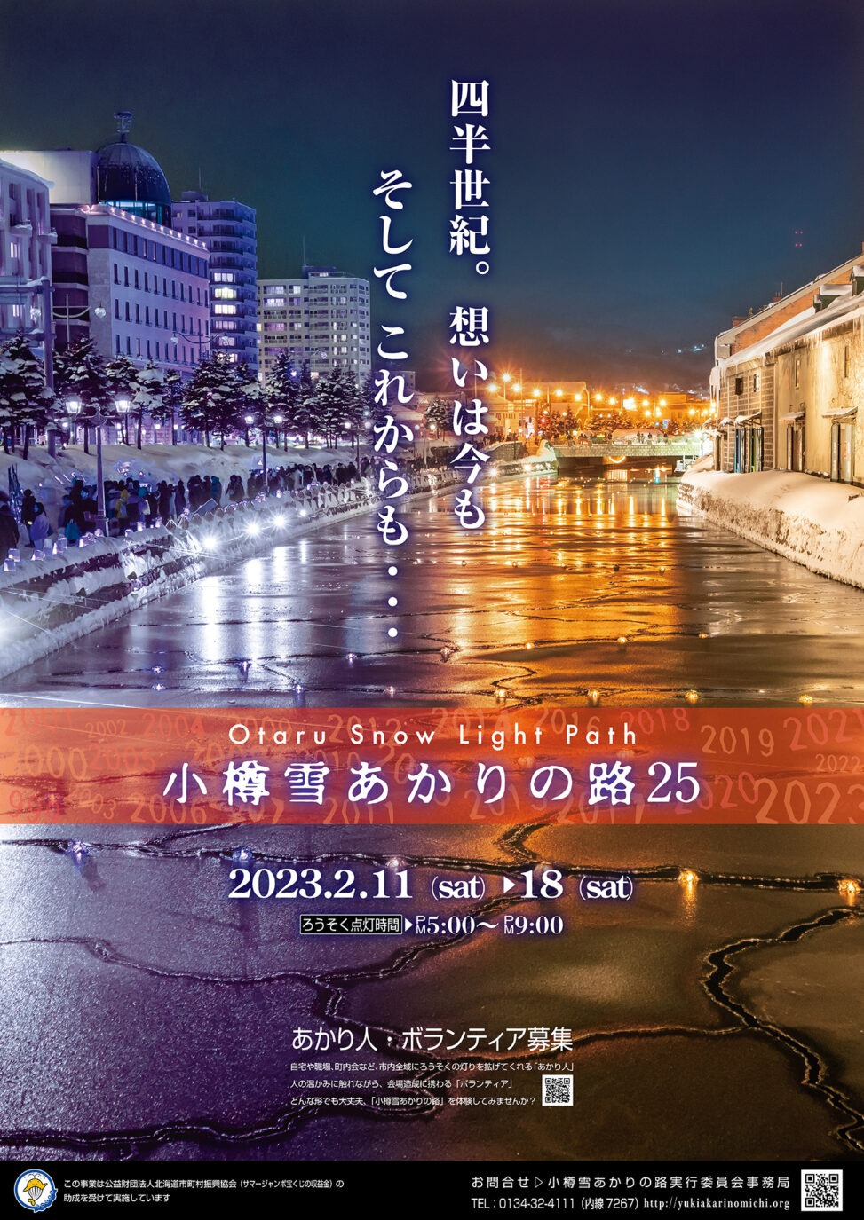 雪の小樽の街並みをライトアップする