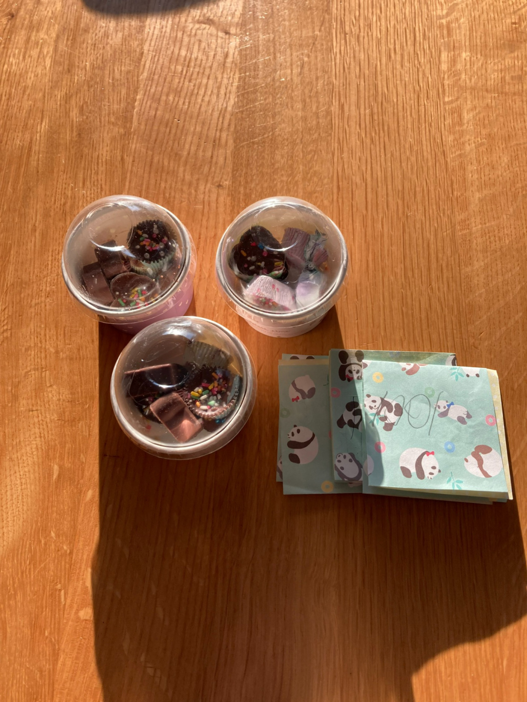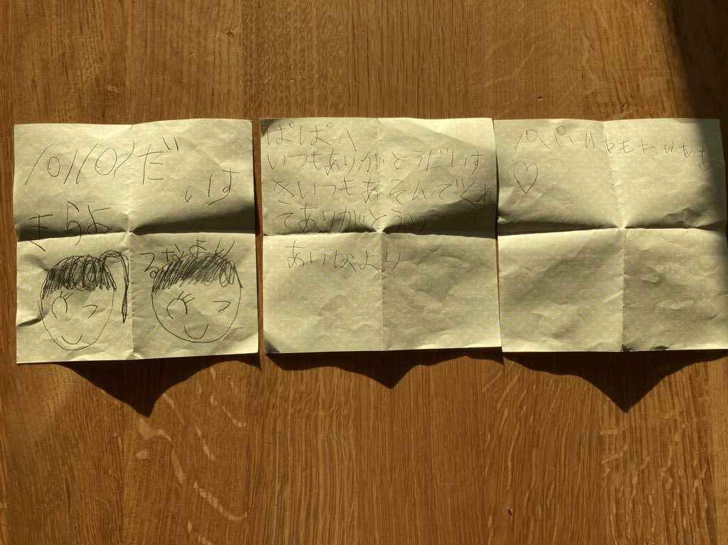 3人の娘達がチョコと手紙をもって玄関で待っているではないですか‼