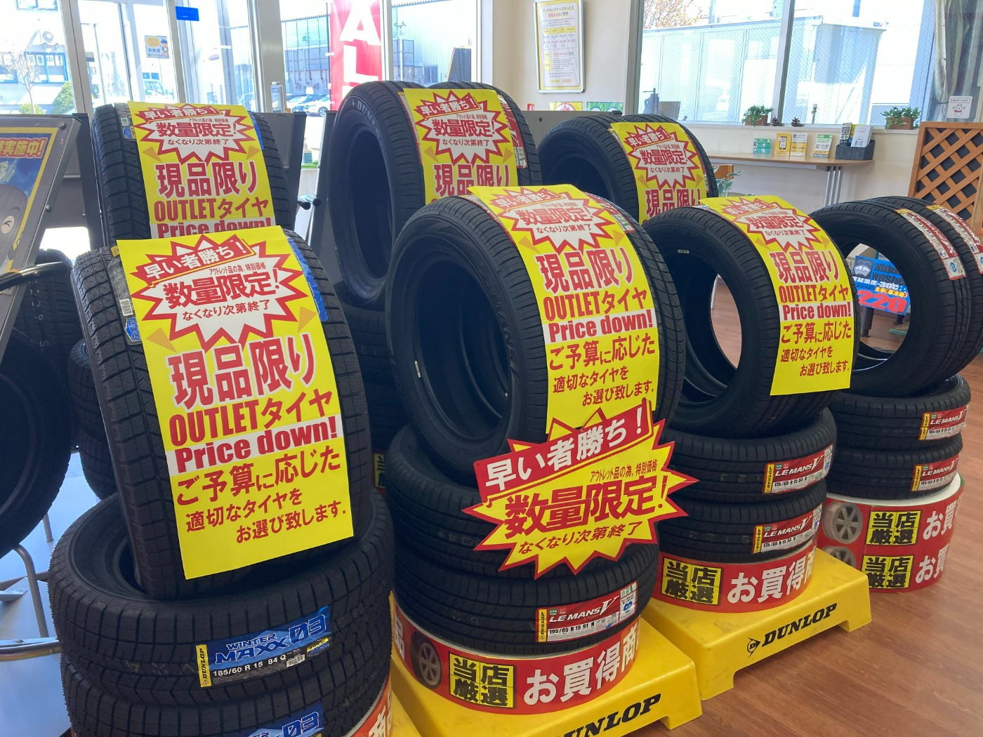 夏タイヤはもちろんの事、スタッドレスタイヤのご用意も