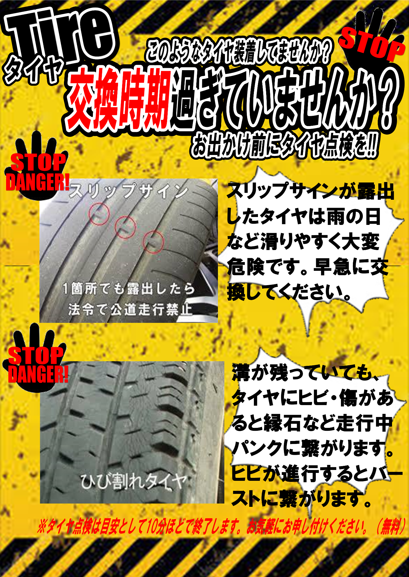 無料でタイヤ点検をさせて頂きます‼
