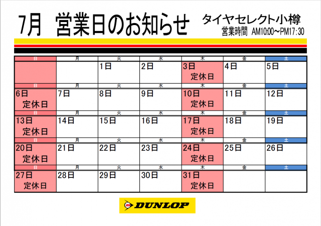 当店ホームページをご覧頂きありがとうございます。 7月の定休日のご案内です。 お間違えの無いようお願いいたします。 本日も皆様のご来店を、スタッフ一同心よりお待ち致しております(^^)/ &nb...
