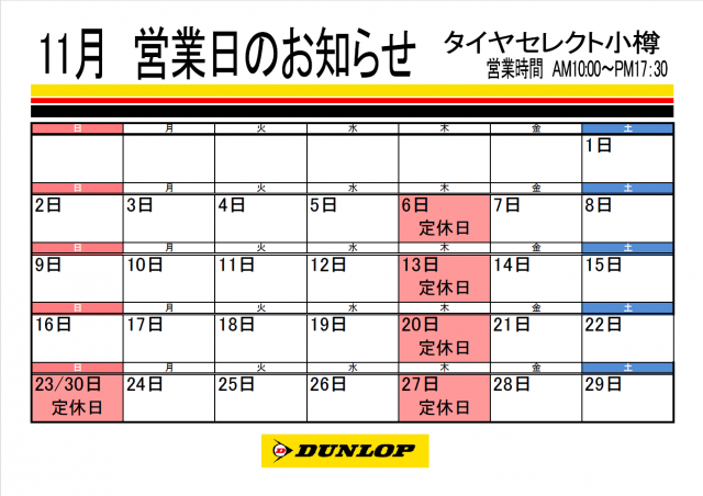 当店ホームページをご覧頂きありがとうございます。 11月の定休日のご案内です。 お間違えの無いようお願いいたします。 本日も皆様のご来店を、スタッフ一同心よりお待ち致しております(^^)/ &n...