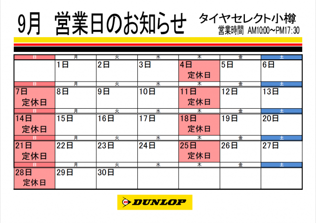 当店ホームページをご覧頂きありがとうございます。 9月の定休日のご案内です。 お間違えの無いようお願いいたします。 本日も皆様のご来店を、スタッフ一同心よりお待ち致しております(^^)/ &nb...