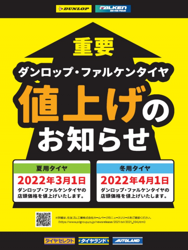 こんにちは! 見逃した方のために、改めてお知らせです! 3月になってしまうと夏タイヤのお値段が上がってしまいます。 今年夏タイヤの購入を検討されている方は、2月中の購入がお得です! 皆様のご来店お待ちしてお...