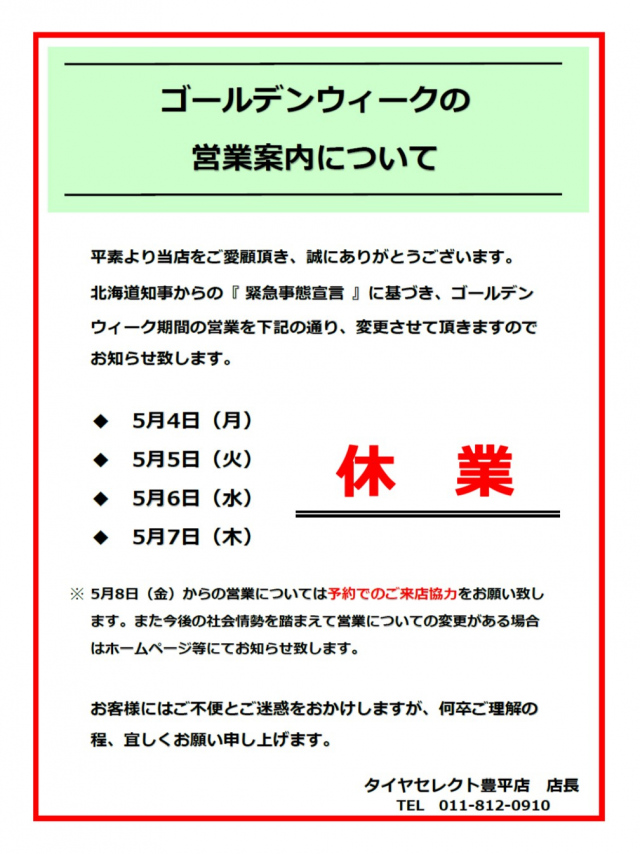 タイヤセレクト豊平店の笹森です