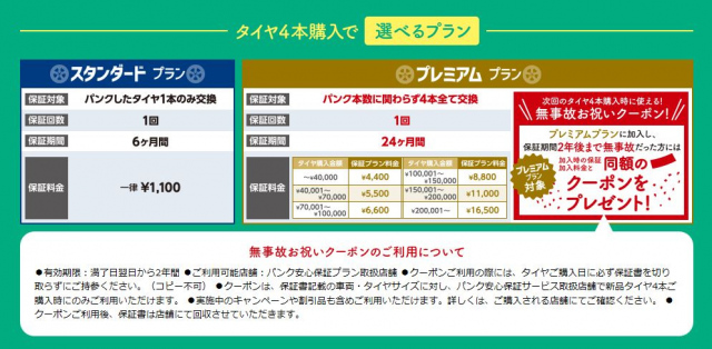 プレミアムプランは、パンクした際に購入後24カ月以内であれば4本とも新品に交換できるというプランです。