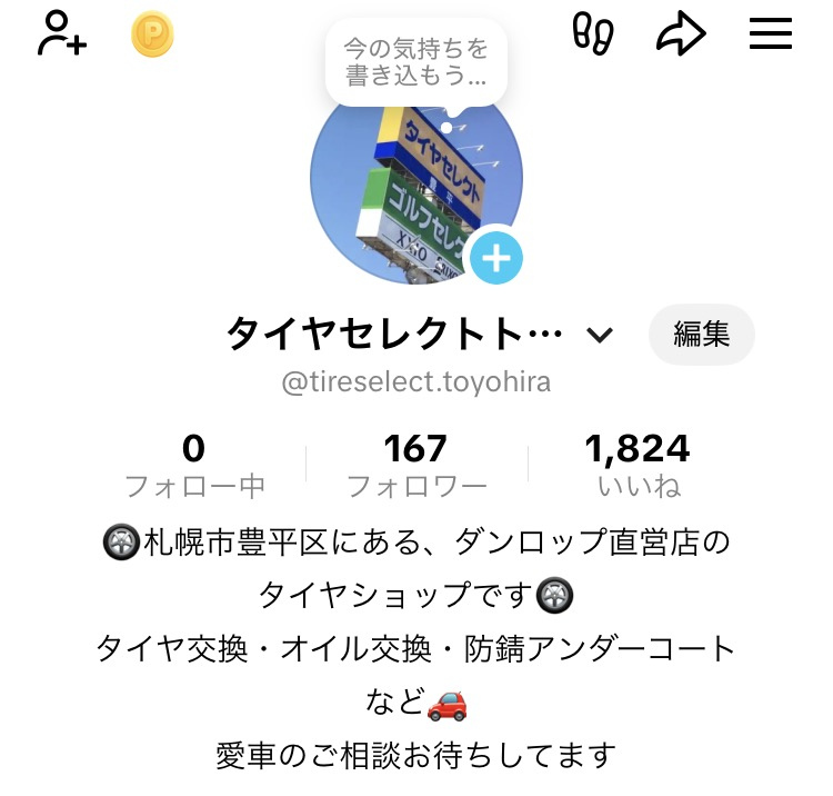 【2月22日】TikTokフォローお願いします!!! タイヤセレクト豊平スタッフTです!! タイヤセレクト豊平公式TikTokがあります(*^-^*) フォローしてください(*^-^*) 2026.02.22