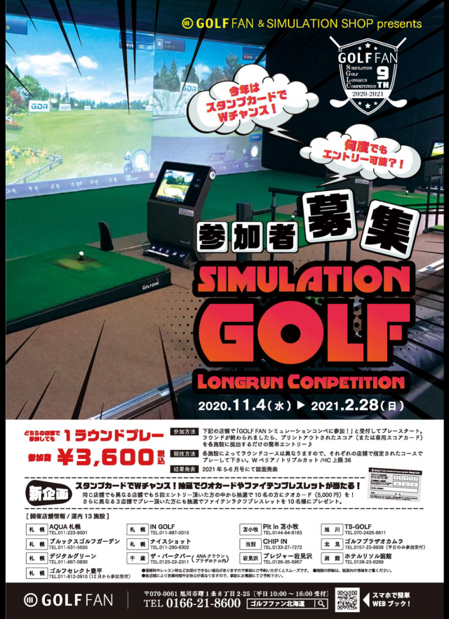 こんにちは。なかみちです。 本日はフリー雑誌『GOLF FAN』主催の シミュレーションゴルフコンペをご紹介♪ このコンペ、昨年11月から道内13施設で実施しており、 2月28日 日曜日までの開催期間となっております。 残り...