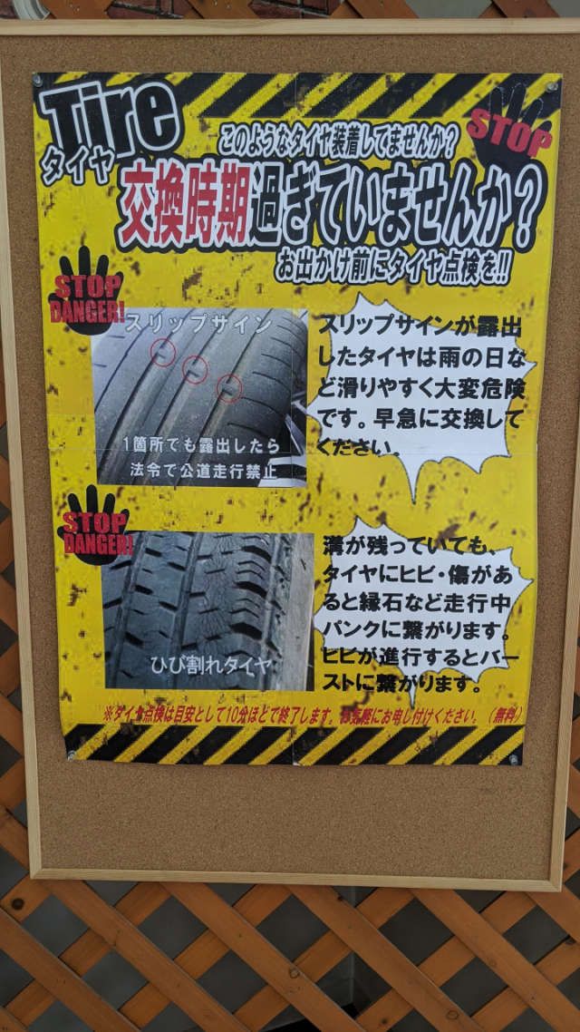タイヤセレクト江別では、皆様のタイヤの無料診断を実施しております