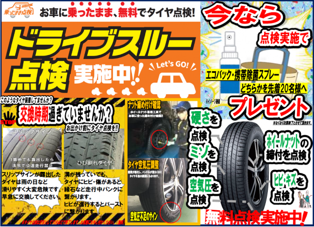 タイヤセレクト江別店では点検に来店された方、先着20名様限定で