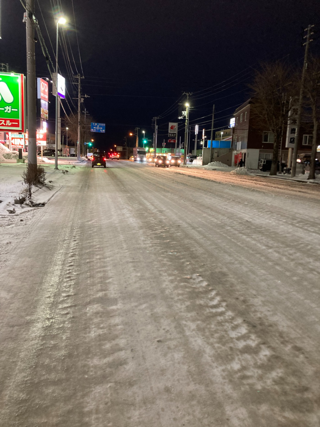 江別店前の道路もちゅるちゅる( ゚Д゚)・・・