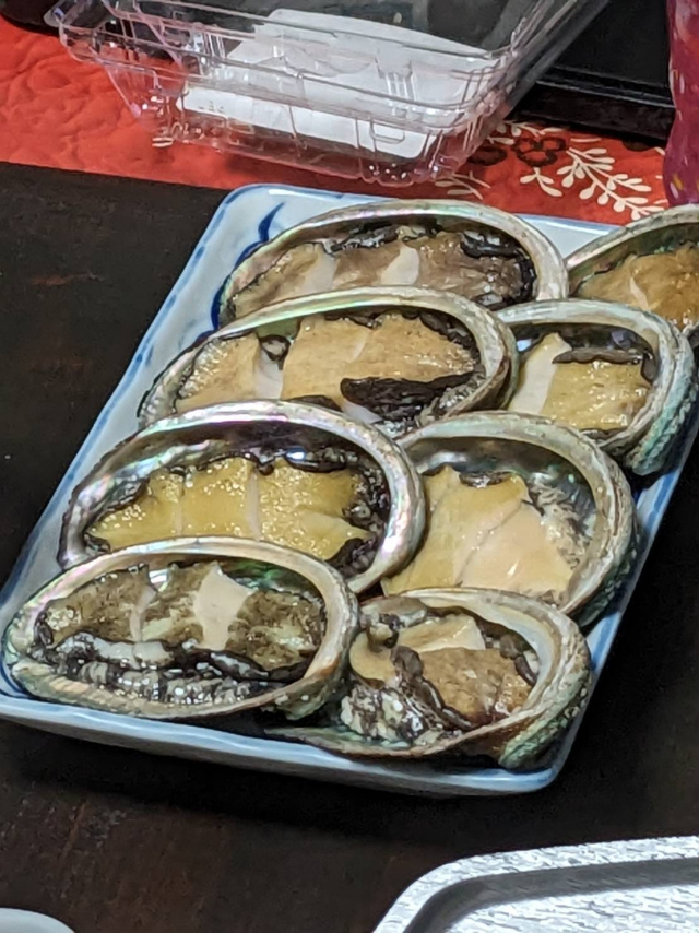 「アワビの刺身」です(・∀・) コリコリといい音を立てて