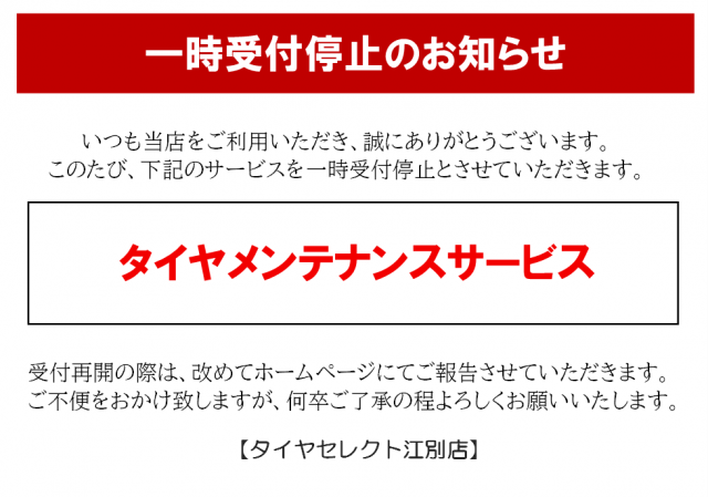 現在「タイヤメンテナンスサービス」は新規受付休止中です。
