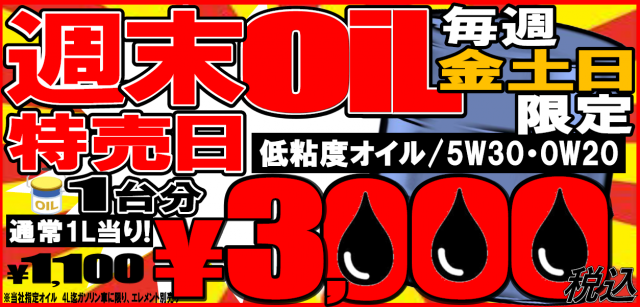 金土日の3日間限定で「週末オイル特売日」実施中!