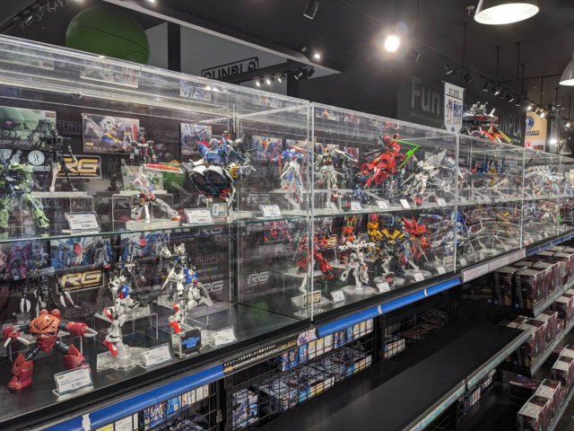数えきれない数のガンプラたちがショーケースに展示され