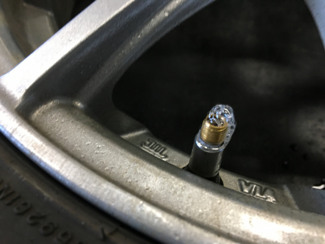 ホイールとの境目に塗布し、気泡のようすを確認します。