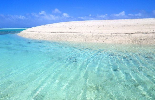 真っ白な砂だけの島、光り輝くエメラルド色の海。