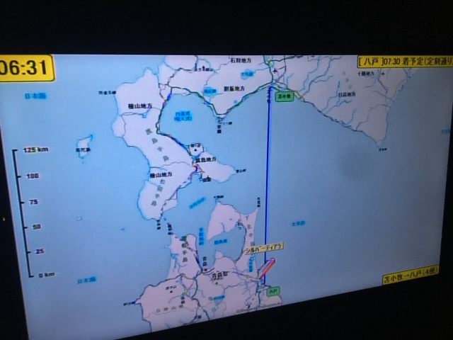 フェリーで約7時間半かけ、青森県の八戸港へ