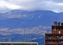「寒候期に雪が山頂に積もっているのが