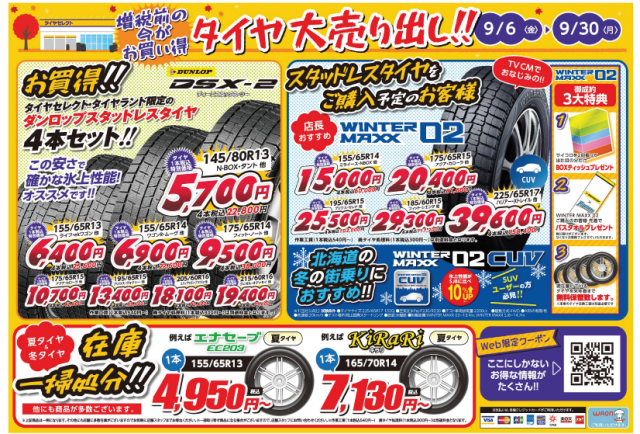 『タイヤ大売出し』を開催中!!