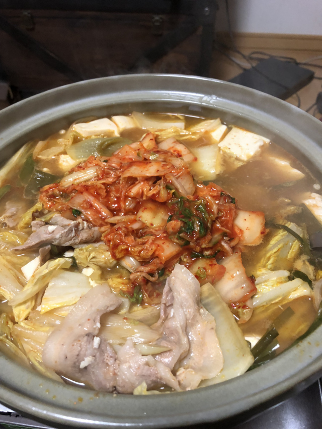 今回は、キムチ鍋にしました。